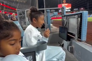 瓦妮莎带着两个宝贝女儿观看道奇棒球赛 好活泼灵动!真的太像了 2025-09-23 15:40