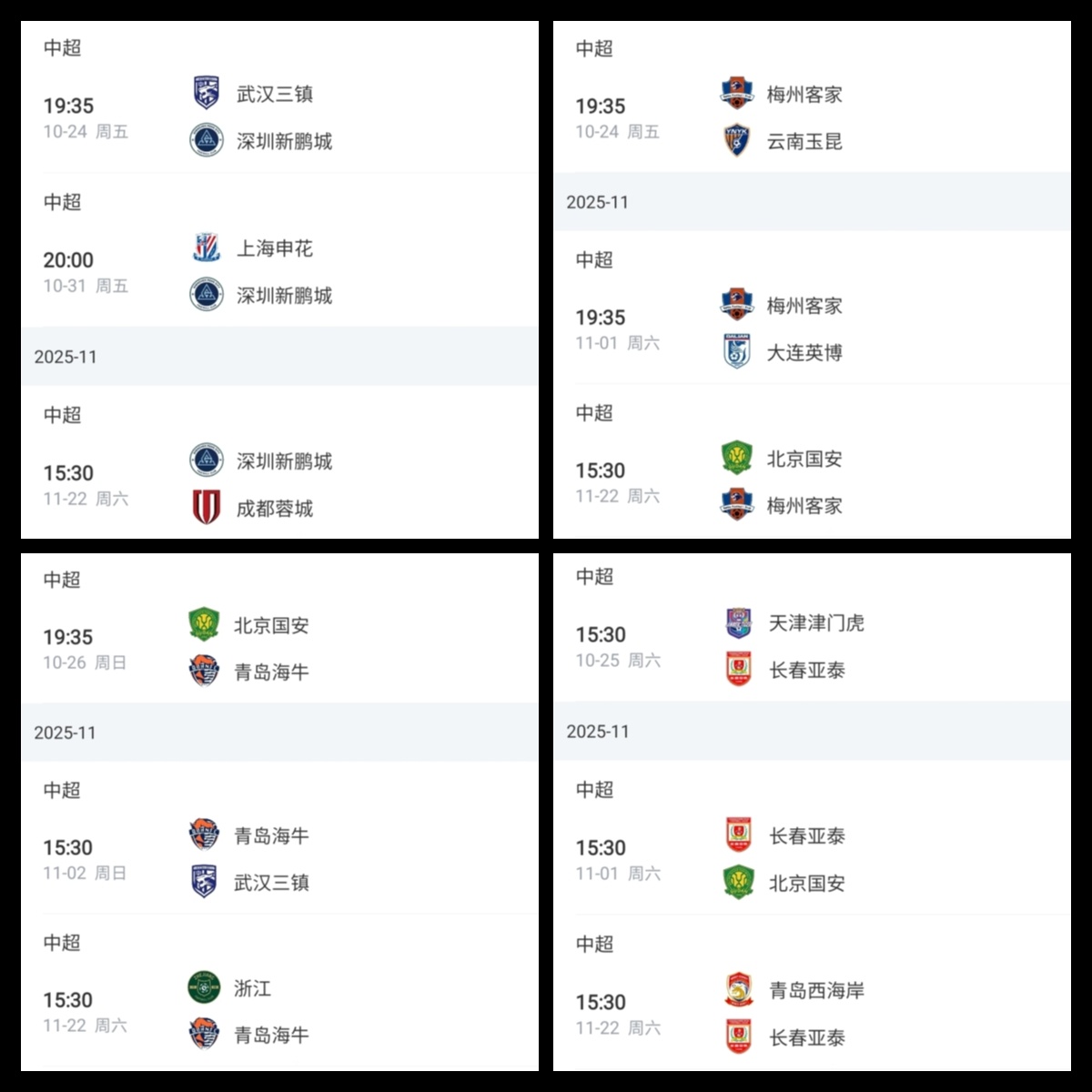 深圳新鹏城、梅州客家、青岛海牛、长春亚泰最后3轮赛程