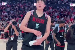 这一幕还挺可爱!杨瀚森背着仙女书包把手里礼物给了两位小朋友