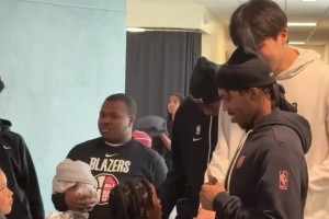 很受喜爱啊杨瀚森参与开拓者社区活动,与小球迷握手互动~ 2025-10-19 15:00