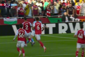 本赛季阿森纳英超首次运动战中失球,此前唯一失球来自索博任意球